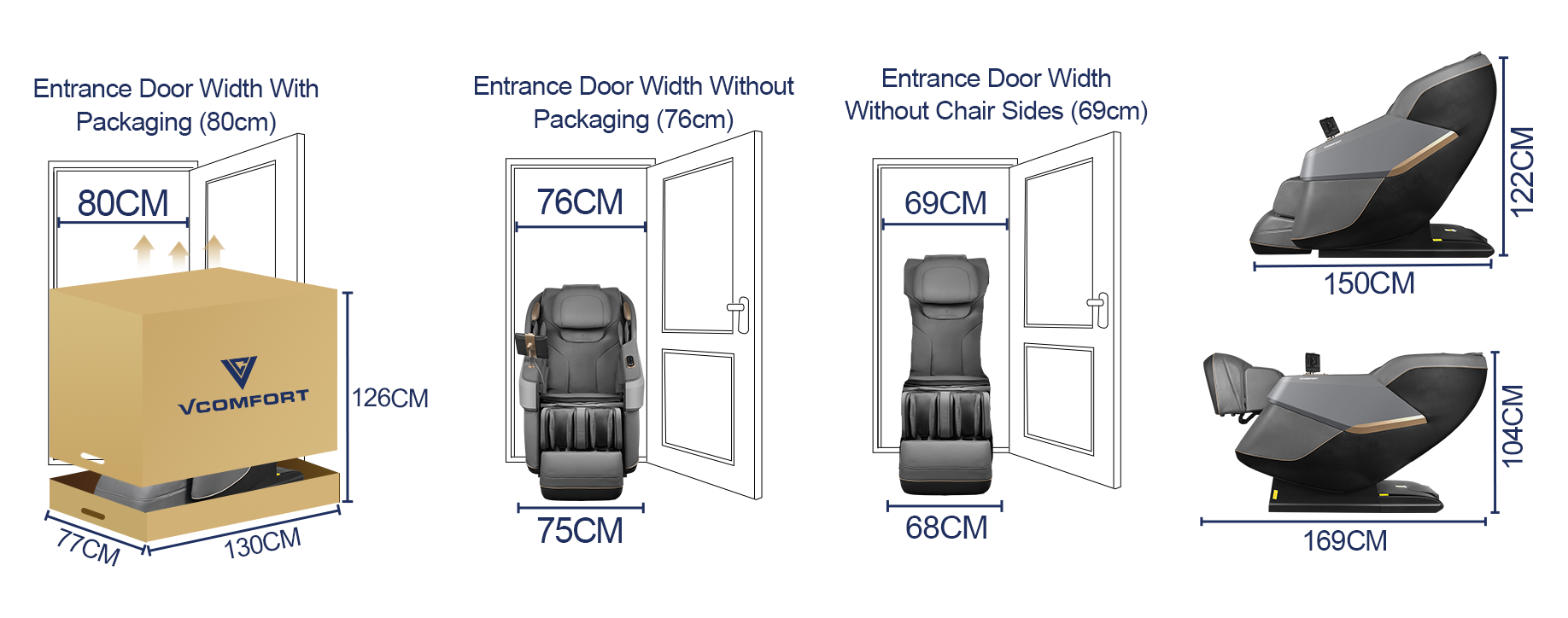 - Voet en kuit: Guasha-rollers voor de voeten, airbagmassage voor kuiten en voeten, afgesloten beensteun.
