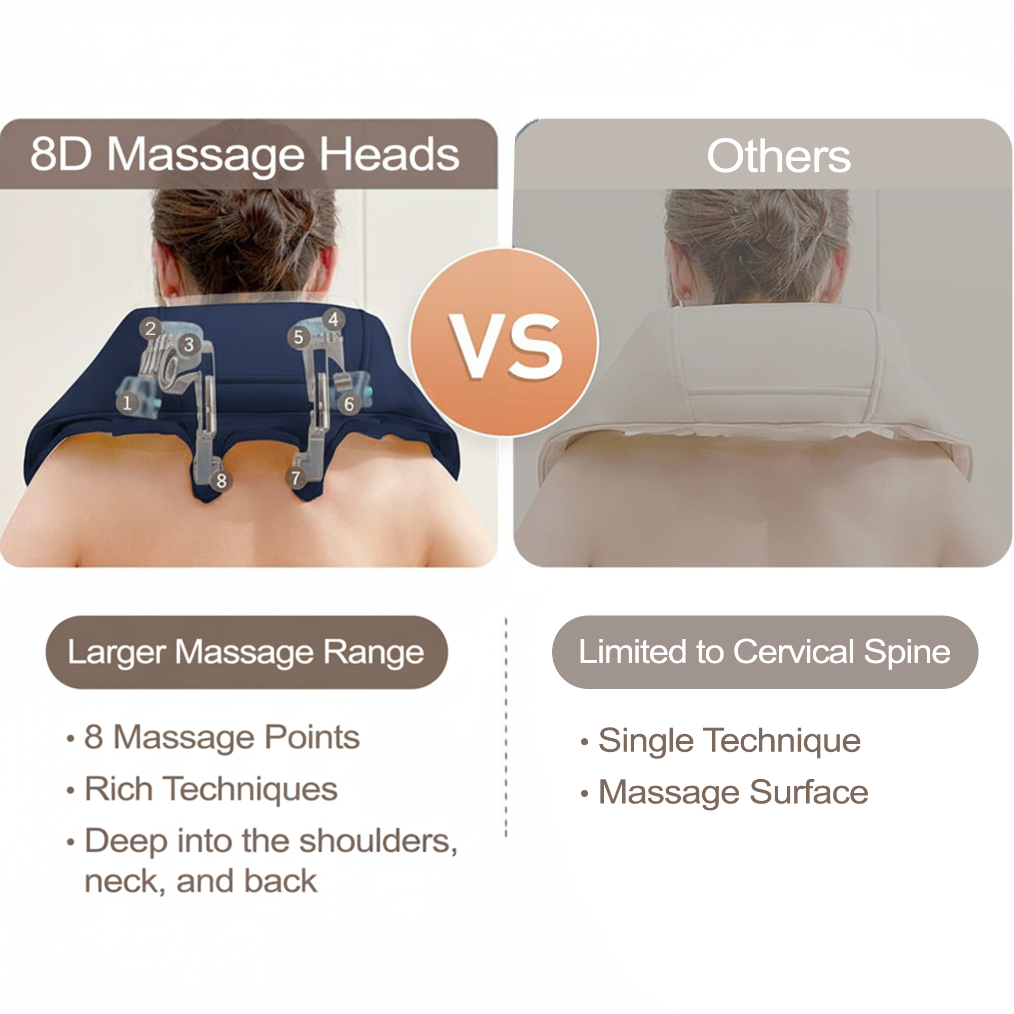 8D Deep-Kneading Massage Heads