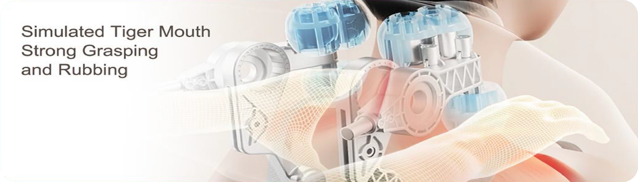Simulate human hand tiger mouth eight character kneading. Grasping, pinching & kneading with strong power. More stable performance & deeper massage.